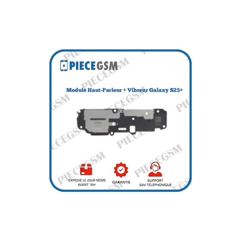 Le module haut-parleur + vibreur pour Samsung Galaxy S25+ (S936B) est une pièce de remplacement située dans la partie inférieure du smartphone. Il regroupe deux fonctions essentielles : la diffusion du son externe (musique, appels en haut-parleur) et le moteur de vibration.