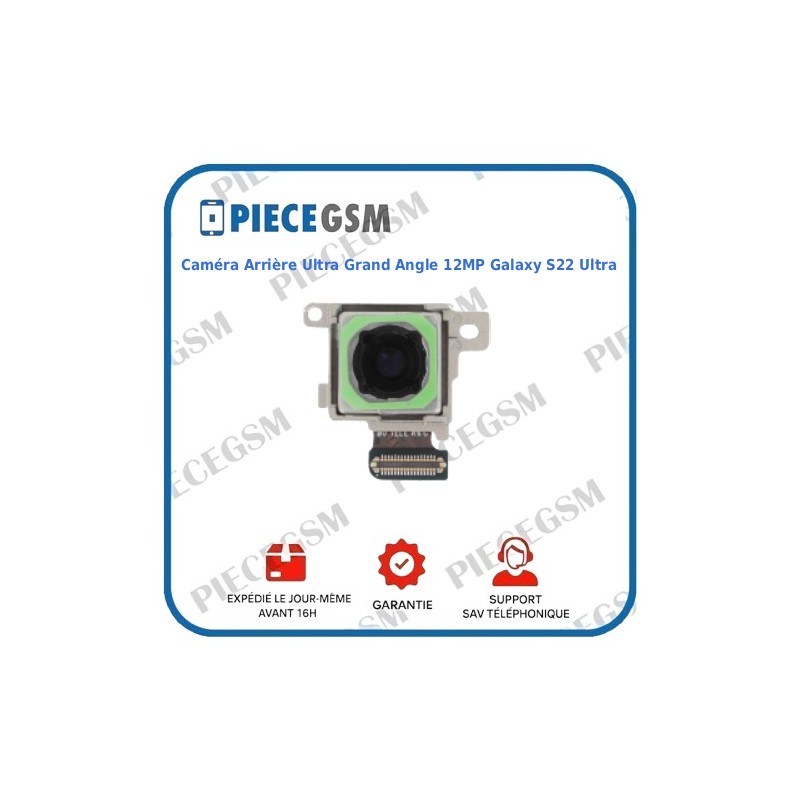 Caméra arrière ultra grand angle 12MP pour Samsung Galaxy S22 Ultra, idéale pour remplacer un module défectueux et retrouver une qualité photo ultra détaillée et professionnelle.