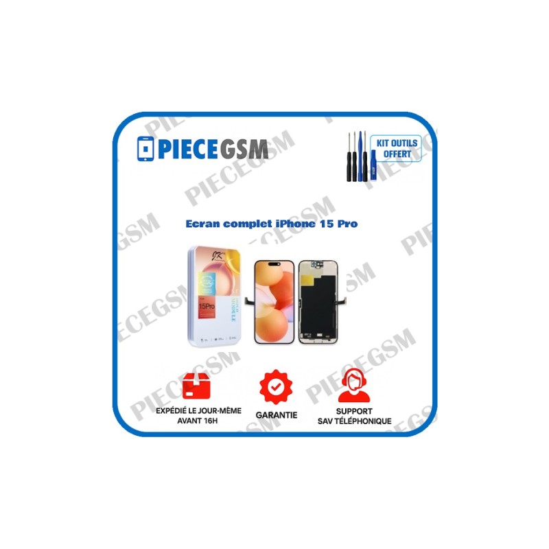 L’iPhone 15 Pro est équipé d’un écran OLED Super Retina XDR avec des couleurs vives et un contraste élevé. Cet écran complet JK vous permet de retrouver une qualité d’affichage et de réactivité tactile proches de l’original.