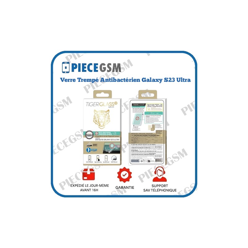 Le verre trempé antibactérien Tiger pour Galaxy S23 Ultra combine protection ultra résistante et hygiène renforcée. Conçu pour protéger l’écran contre les chocs, rayures et fissures, il limite également la prolifération des bactéries pour un usage plus sûr au quotidien.