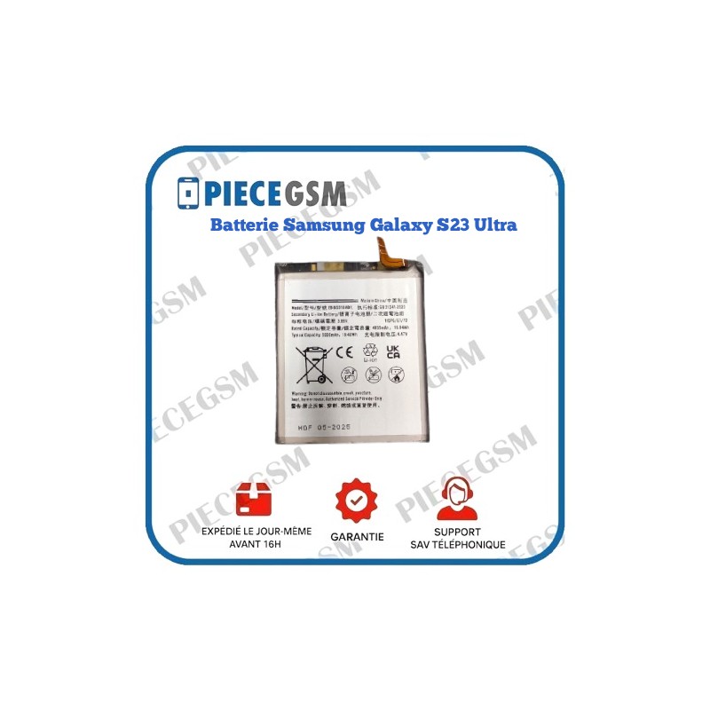 Redonnez une seconde vie à votre smartphone avec cette batterie compatible pour Samsung Galaxy S23 Ultra (S918B). Idéale pour remplacer une batterie usée ou défectueuse, elle vous permet de retrouver une autonomie fiable au quotidien.